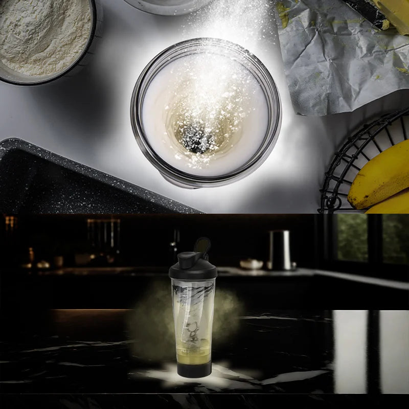 The End of Clumps: electric shaker bottle from puts powerful portable mixing in the palm of your hand. Our portable vortex shaker bottle is the next generation of wellness technology that is strong enough to blast away any clumps and turn your protein shake into a silky smooth moment of indulgence every time.